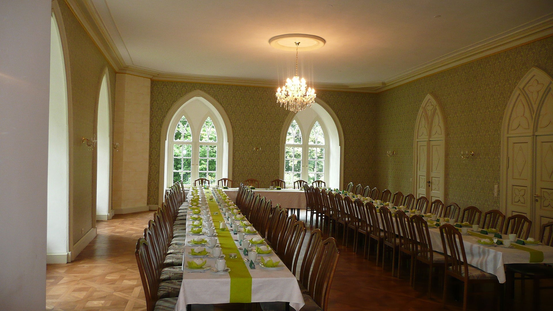 Eine barrierefreie Toilette und ein Aufzug für Rollstühle zum Saal sind im Erdgeschoss vorhanden. Parkplätze stehen ausreichend in Schlossnähe zur Verfügung.
