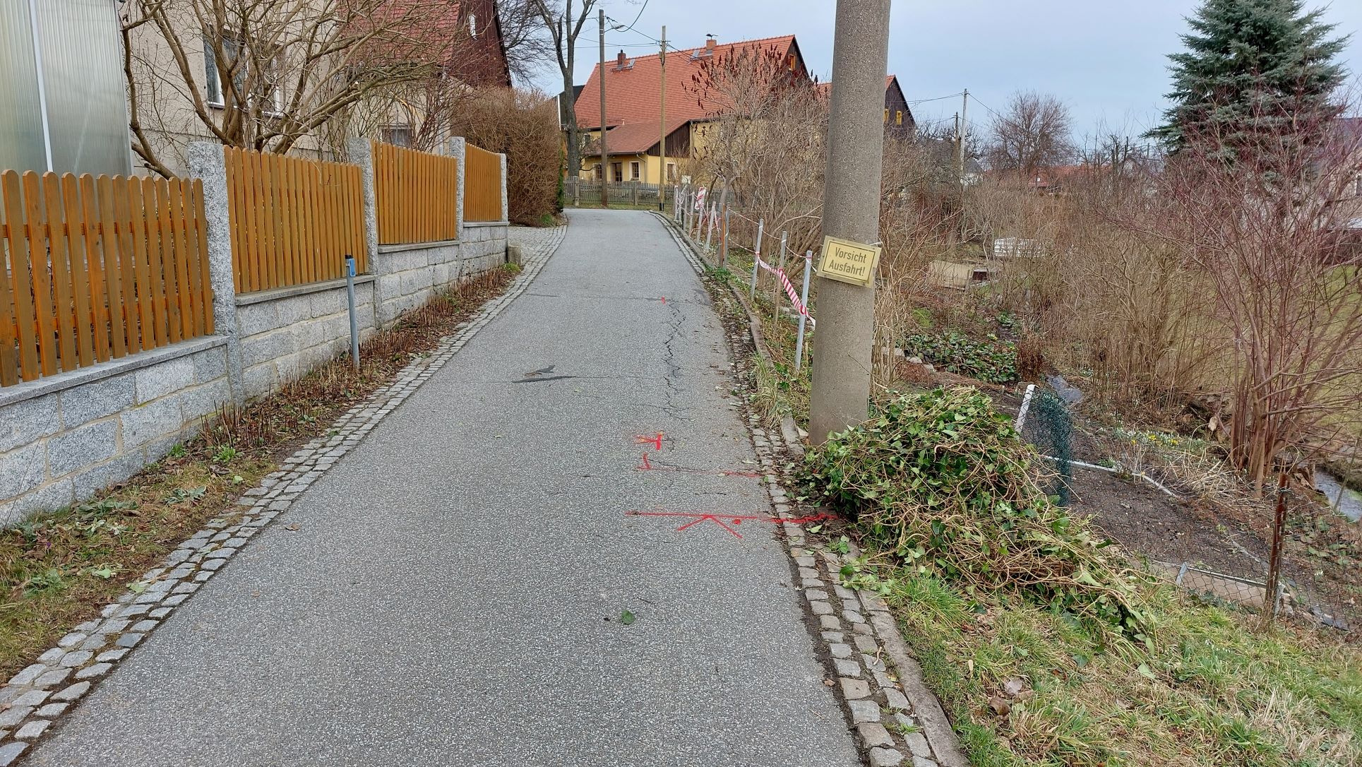 Erneuerung der Fahrbahnabgrenzung auf dem Bergweg im OT Leppersdorf