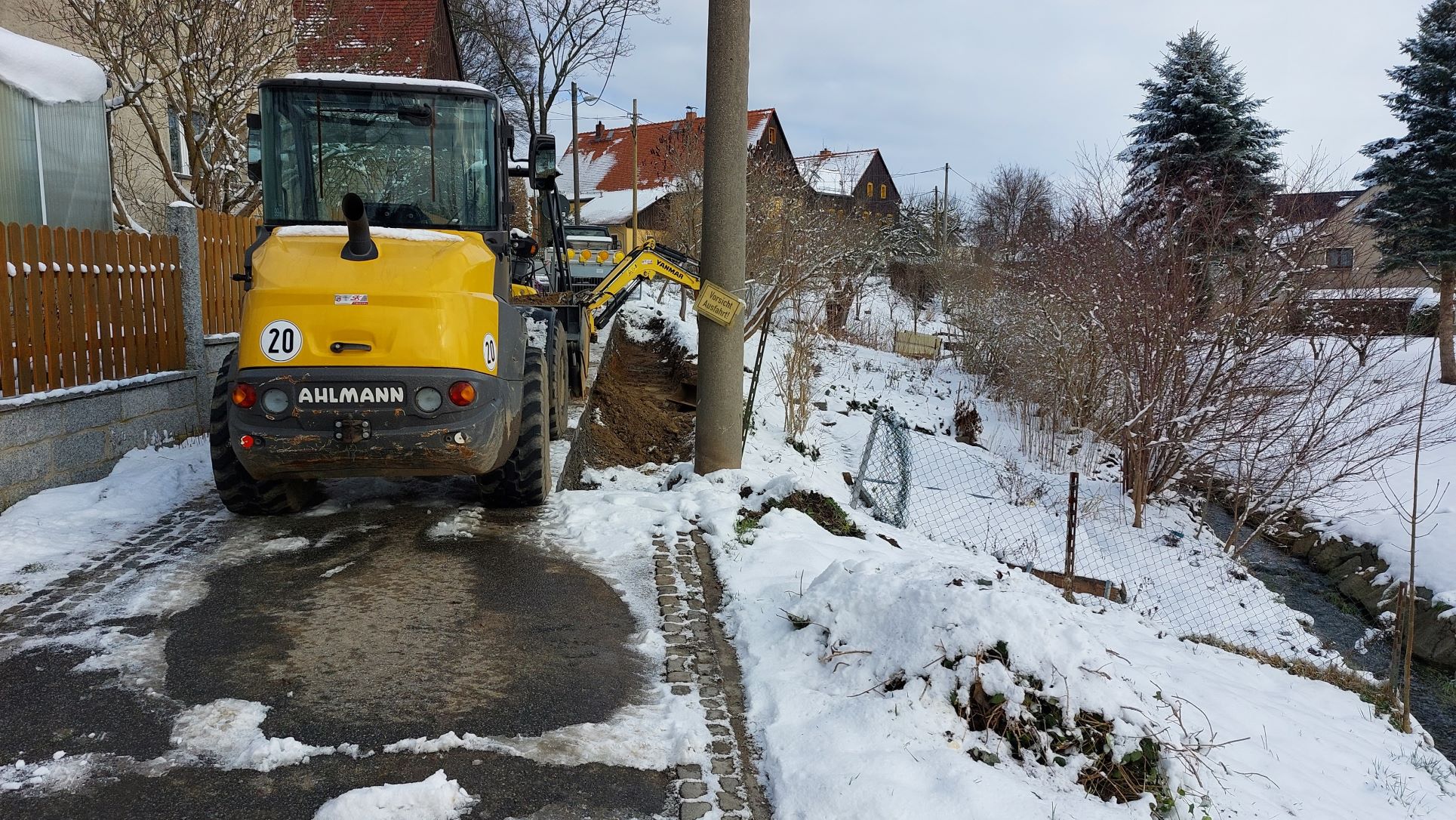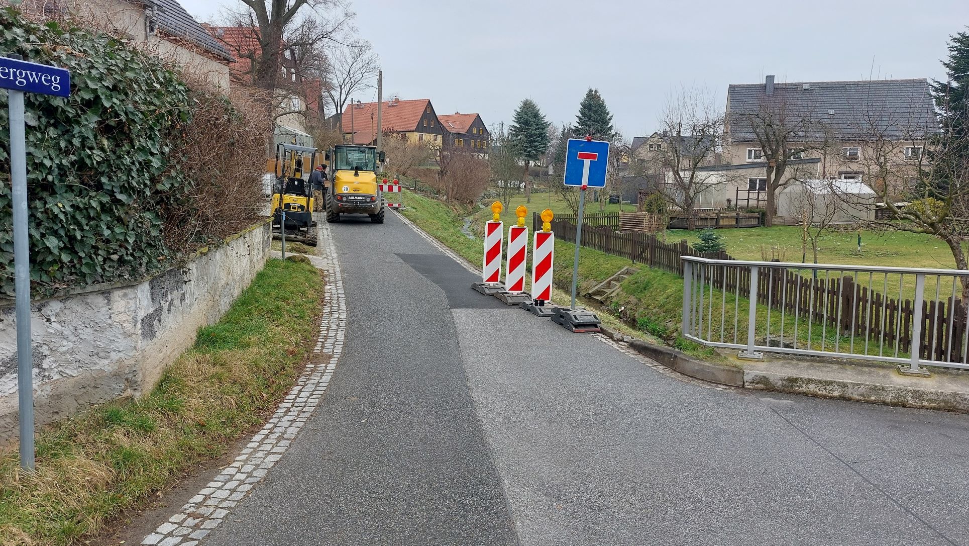 Am 22.02.2023 wurde mit der Absperrung des Baufeldes durch die Firma Königsbrücker Ingenieur- und Straßenbau, Königsbrück begonnen. Es werden 40 Meter Winkelstützen in zwei Bauabschnitten eingebaut, um die Straße auf der Hangseite gegen weitere Beschädigungen durch Setzungen der Straße zu schützen. Die Bauzeit beträgt, je nach Witterung, voraussichtlich 4 Wochen.