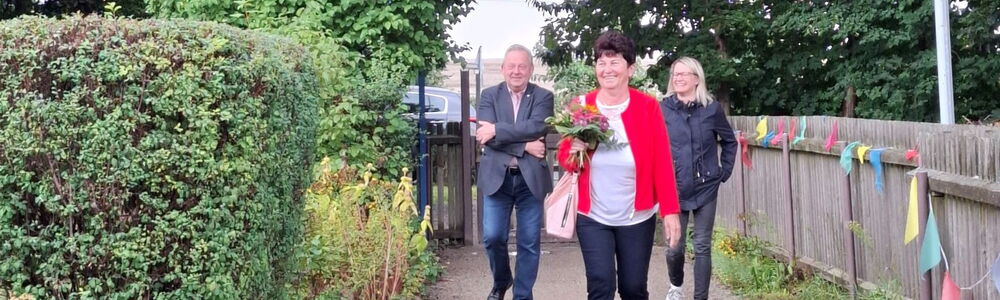 Ein lang gehegter Wunsch ging in Erfüllung. Mit Blaulicht und Sirene wurde die Jubilarin am Morgen von der Freiwilligen Feuerwehr abgeholt – eine Überraschung, die ihr ein strahlendes Lächeln ins Gesicht zauberte. Im Kinderhaus angekommen, wurde sie von Kindern, Eltern, Kolleginnen und Kollegen sowie Bürgermeister Veit Künzelmann und Sven Krell, Vorstand der Volkssolidarität Elbtalkreis-Meißen, herzlich empfangen.