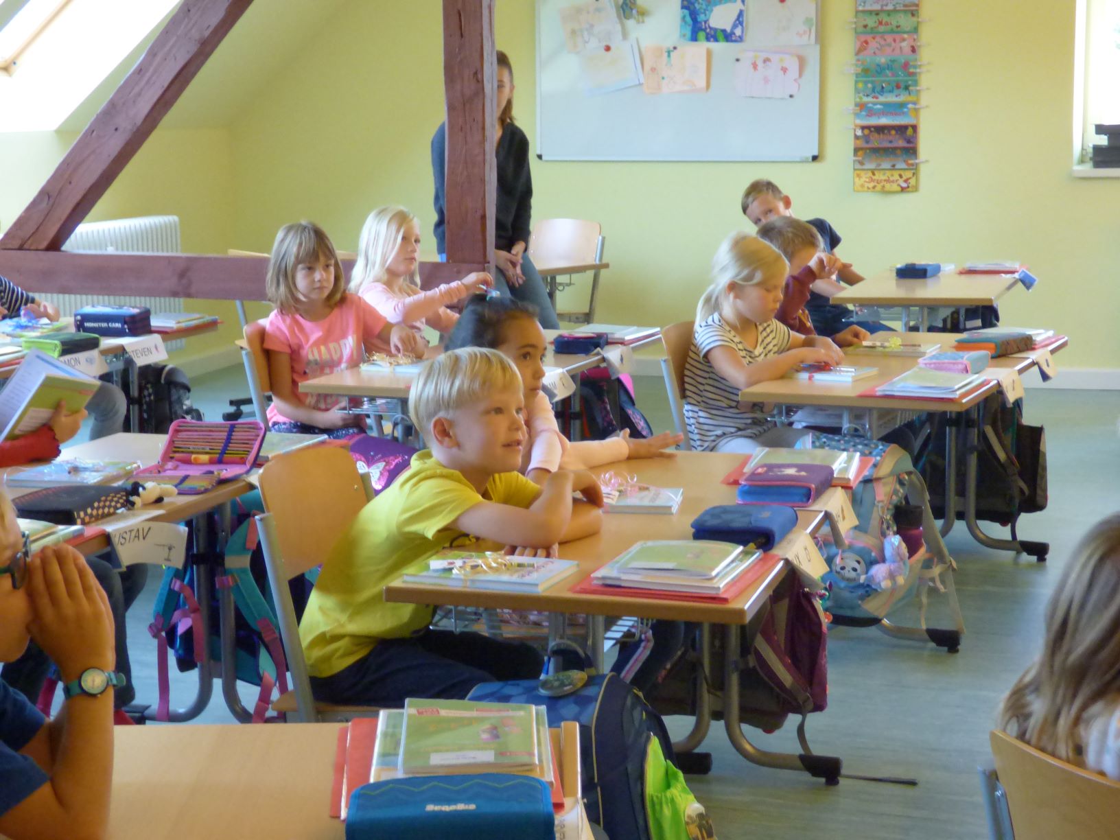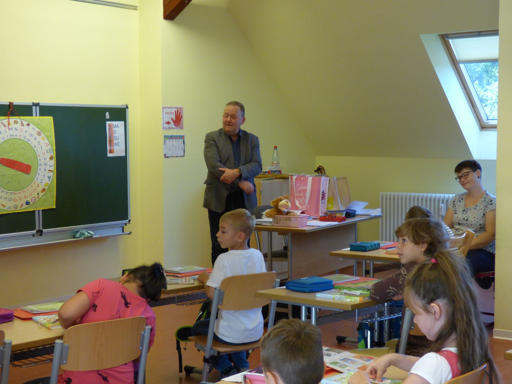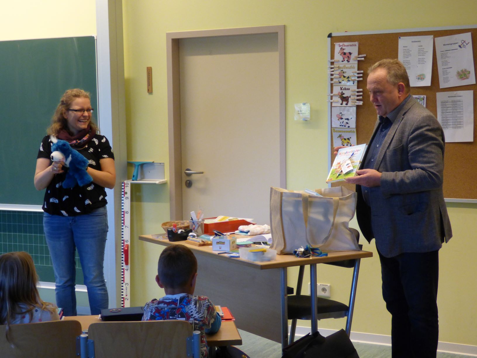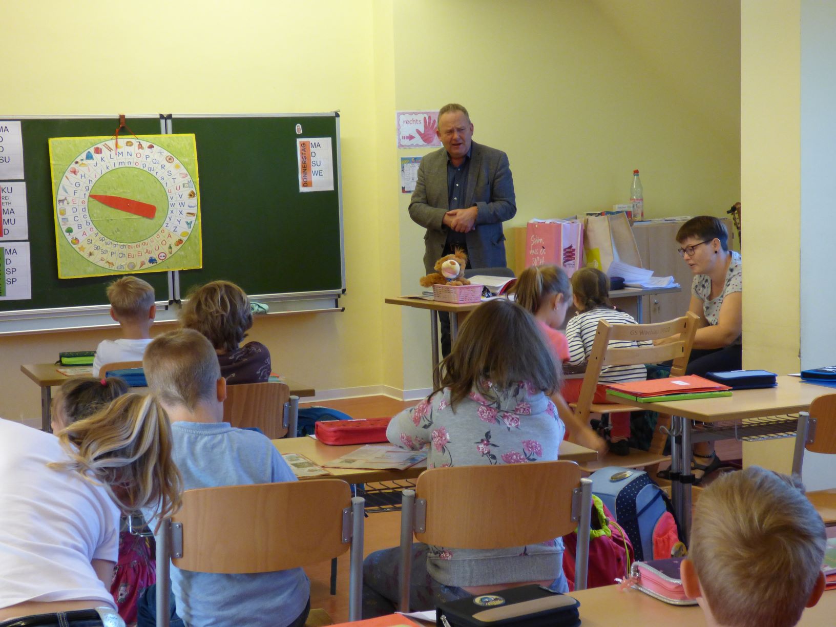 Ganz gespannt schauten die ABC-Schützen in den Grundschulen Leppersdorf und Wachau, als sich mitten im Unterricht die Türe öffnete und der Bürgermeister mit einer großen Tasche in der Hand hinein lugte. Was er wohl bei den Erstklässlern möchte?