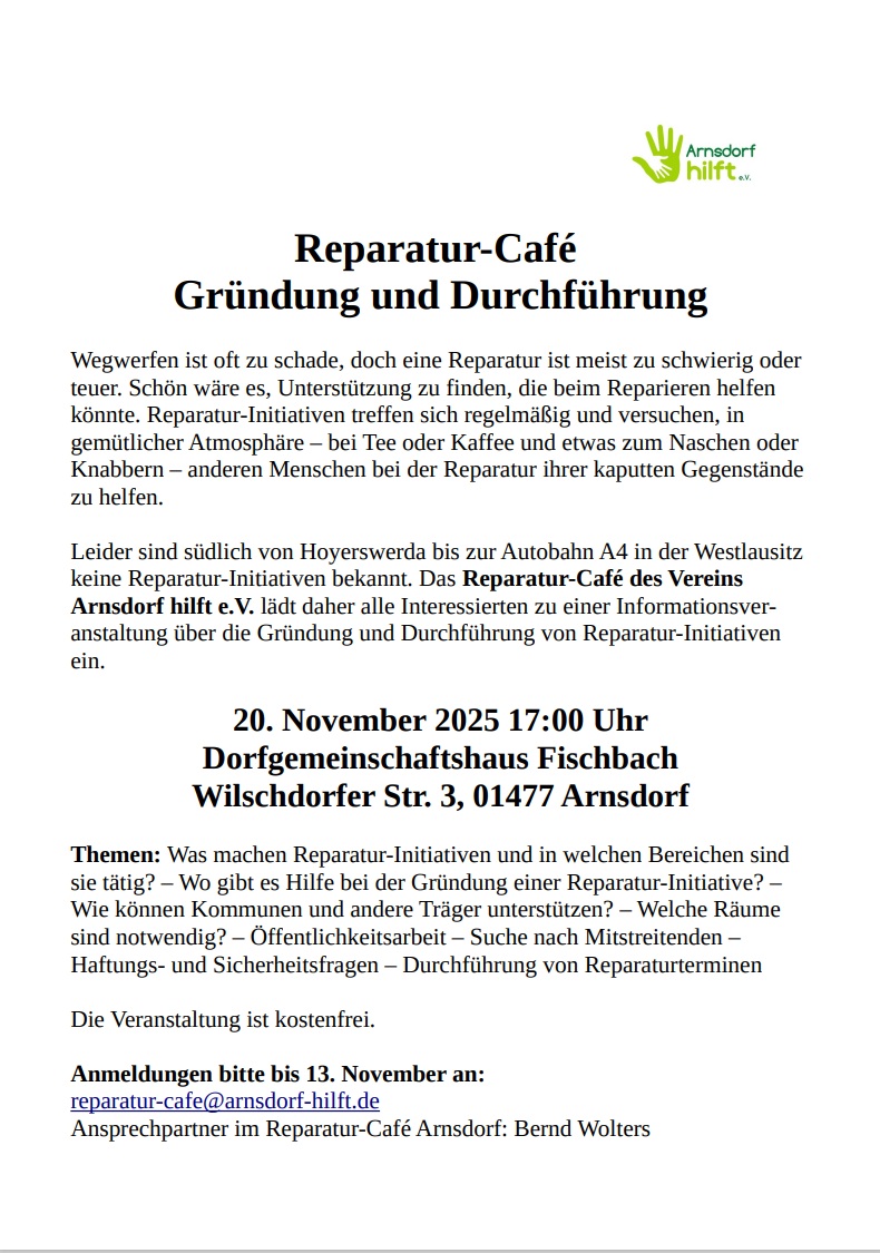 Reparatur-Café - Gründung und Durchführung Informationsveranstaltung