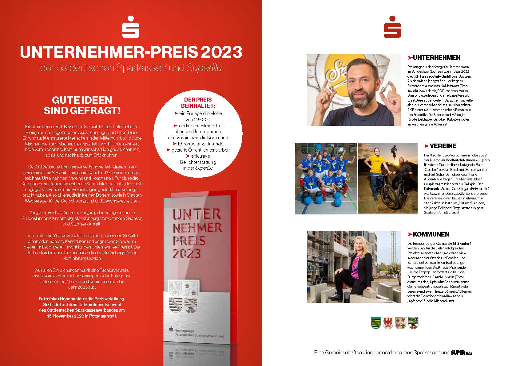 UNTERNEHMER-PREIS 2023 des ostdeutschen Sparkassenverbandes