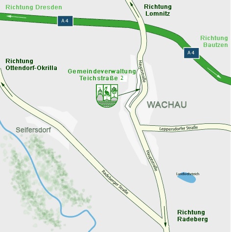 Gemeindeverwaltung WachauTeichstaße 201454 WachauTel.: 03528 / 4808-0Fax: 03528 / 4808-18info@wachau.de