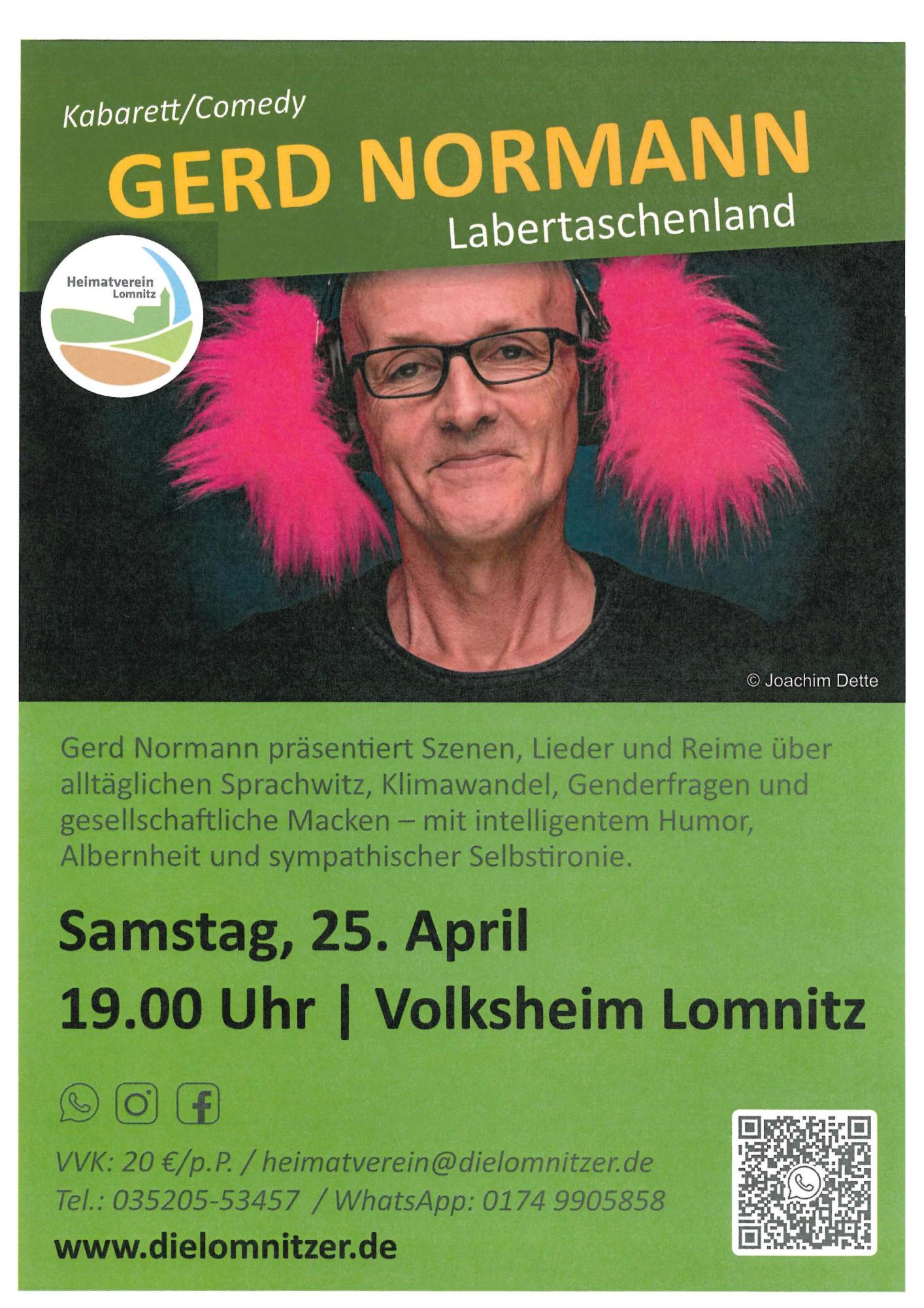 "Labertaschenland" - Kabarett mit Gerd Normann im Volksheim Lomnitz |